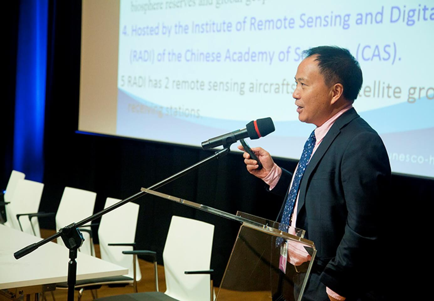 7月4日,HIST与欧空局哥白尼计划、德国海德堡大学世界遗产教席等共同主办了“从空中保护UNESCO名录遗产”边会。会议由N.Ishwaran主持,世界遗产中心主任Mechtild Rossler女士参加会议并致辞,她高度赞许了空间技术在世界遗产的保护监测等方面发挥的独特作用,并对HIST承担的所罗门濒危世界遗产地监测项目给予充分肯定;随后,洪天华介绍了HIST过去几年在世界遗产领域所开展的国际项目和国际活动,并提出了未来合作的建议;欧空局代表Dr.HendrikR.Stark介绍了Sentinel卫星的特点及与国际社会开展的合作;海德堡大学Dr. Nils Wolf介绍了应用空间技术开展对世界名录遗产的监测与保护工作。会议结束时,参会代表与HIST代表进行了充分交流,表达了与HIST开展实质合作的愿望。