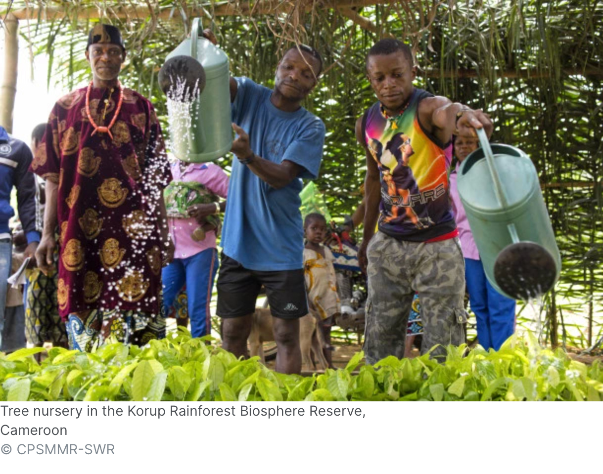 拥有超过6000万年历史的可鲁普(Korup)雨林是非洲最古老的雨林之一。可鲁普雨林生物圈保护区位于喀麦隆西南的几内亚—刚果生物地理区,毗邻尼日利亚的奥班生物圈保护区,拥有从低地森林到亚热带山地雨林的广阔景观。它因丰富的生物多样性和特有的动植物而成为非洲的2个更新世保护区之一。该生物圈保护区内栖息着众多非洲灵长类动物,包括极度濒危的克罗斯河大猩猩。雨林中还生活着3万余名语言和文化各异的居民。当地经济同样十分多元,涵盖农业、林业、旅游业以及娱乐和服务行业。约有32个村庄通过旨在加强社区参与和改善当地生计的协作进程参与可鲁普雨林的管理。