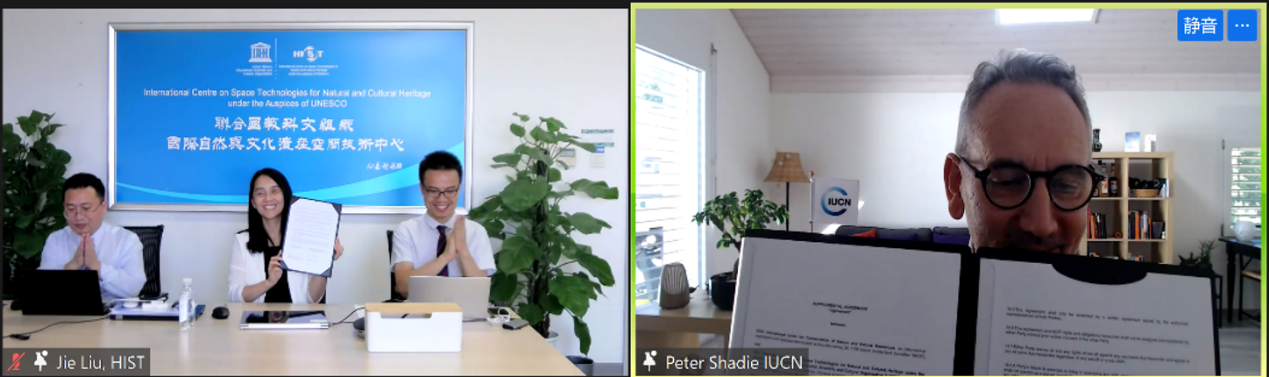 7月7日,联合国教科文组织国际自然与文化遗产空间技术中心(HIST)主任郭华东院士与世界自然保护联盟(IUCN)总干事Bruno Oberle在线签署空间信息技术助力世界遗产保护合作备忘录。