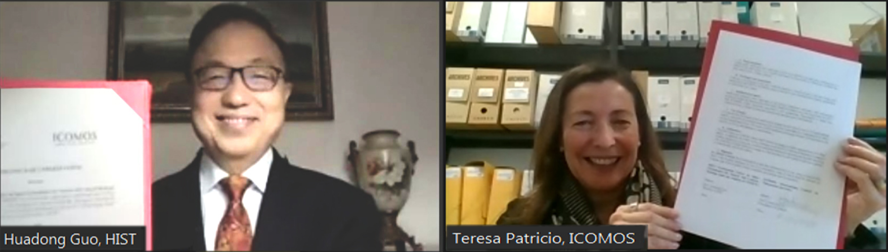 2022年11月21日,联合国教科文组织国际自然与文化遗产空间技术中心(HIST)主任郭华东院士与国际古迹遗址理事会(ICOMOS)主席特蕾莎·帕特里西奥(Teresa Patricio)博士在线签署空间信息技术助力世界文化遗产保护的合作备忘录。