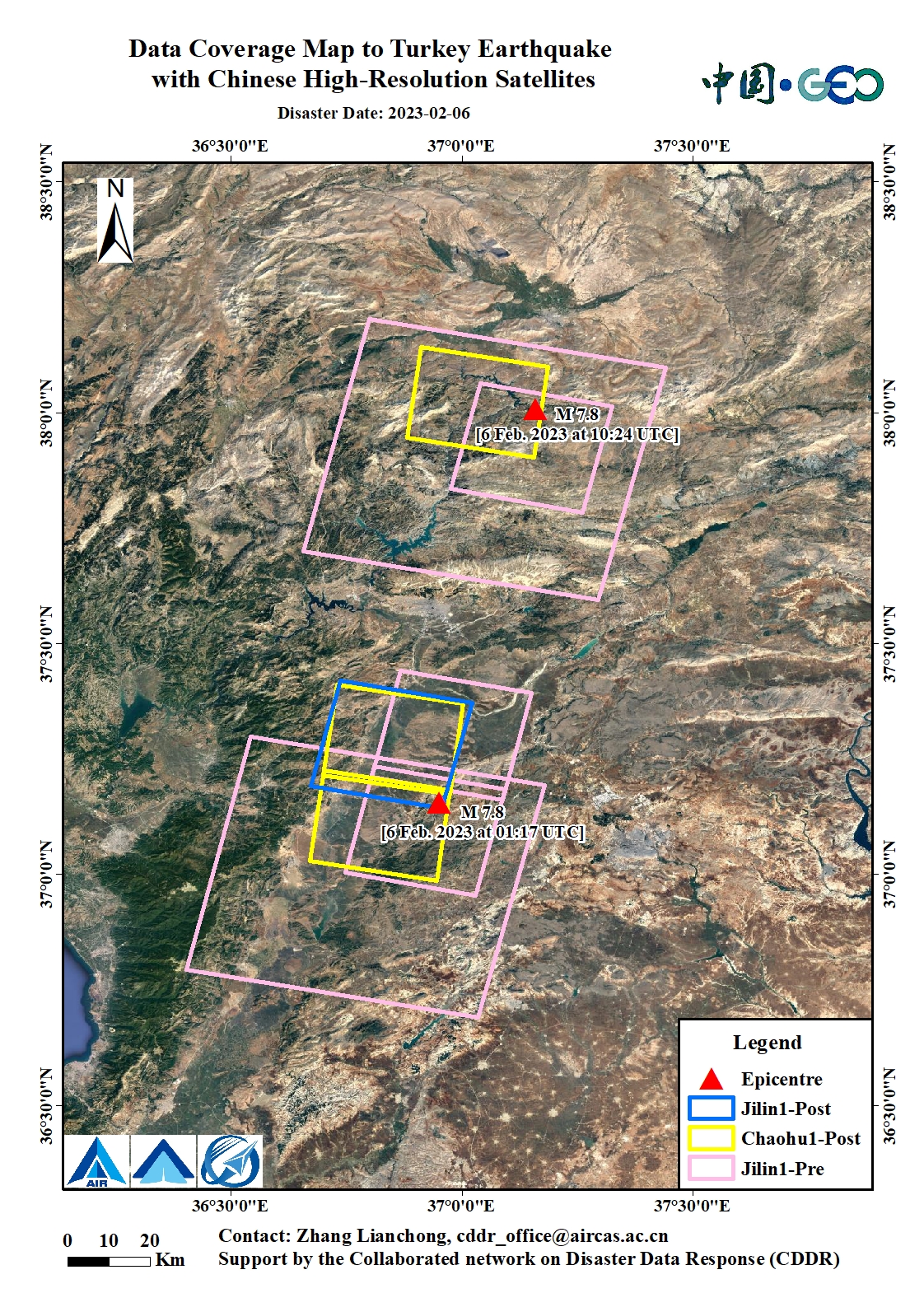 2023年2月6日,土耳其和叙利亚边境地区连续发生两次7.8级强烈地震,造成重大人员伤亡和财产损失。为履行中国作为地球观测组织(GEO)联合主席国的责任和义务,国家遥感中心(GEO中国秘书处)第一时间启动全球重大灾害数据应急响应机制(CDDR),由中国科学院空天信息创新研究院(以下简称“空天院”)全程主持了本次灾害数据应急工作。