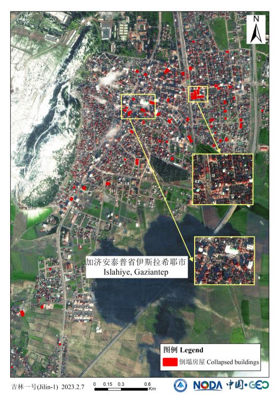 图4 土耳其加济安泰普省伊斯拉希耶市房屋倒塌应急监测图(国家遥感应用工程技术研究中心 王福涛团队提供)