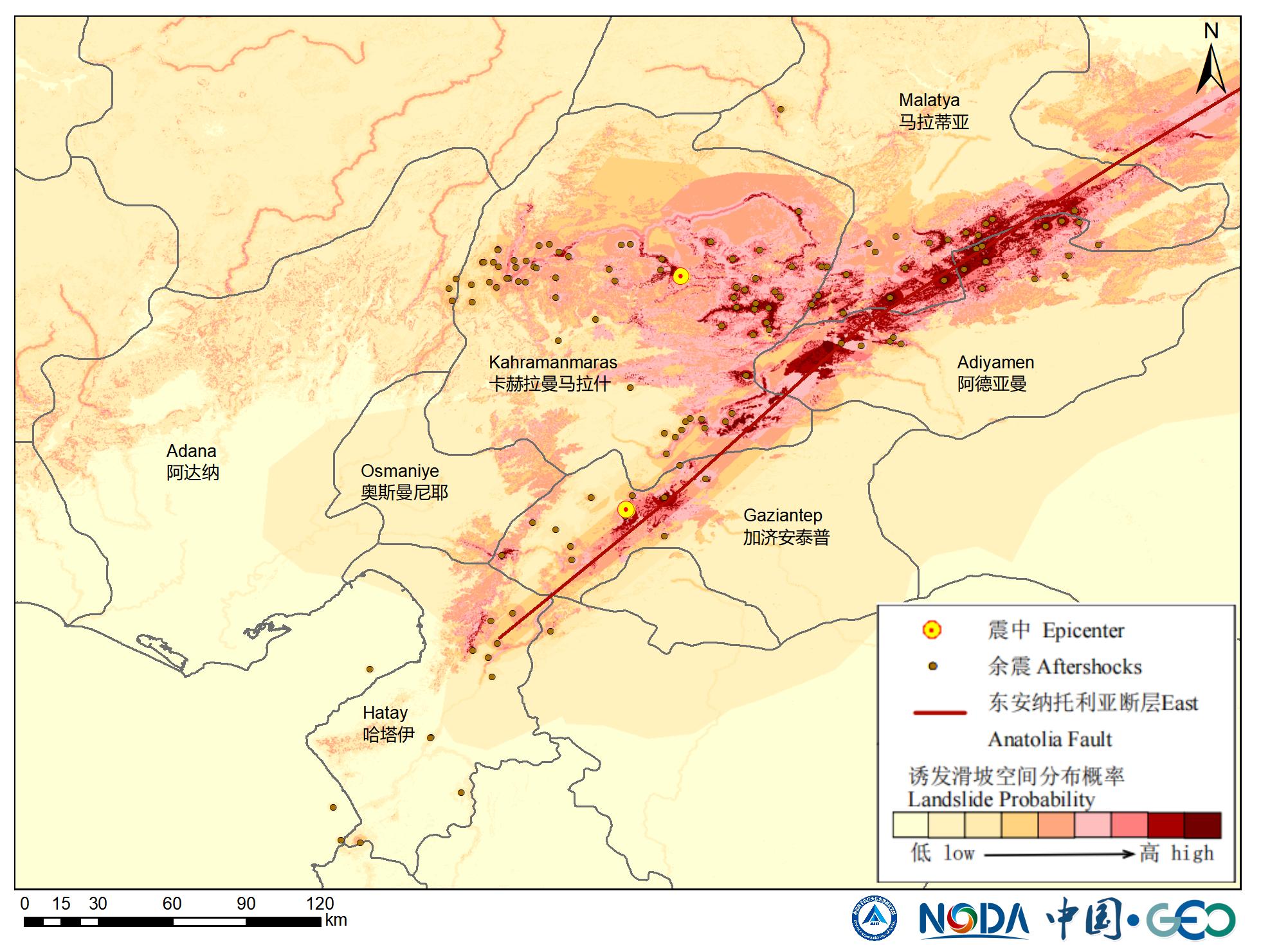图5 土耳其地震灾区次生地质灾害风险评估图(国家遥感应用工程技术研究中心 王福涛团队提供)