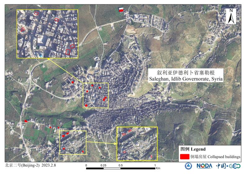 图6 叙利亚伊德利卜省塞勒根房屋倒塌应急监测图(国家遥感应用工程技术研究中心 王福涛团队提供)