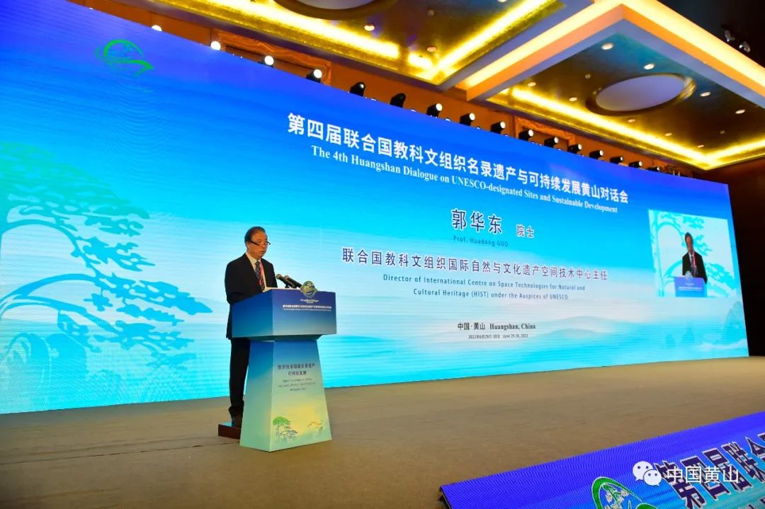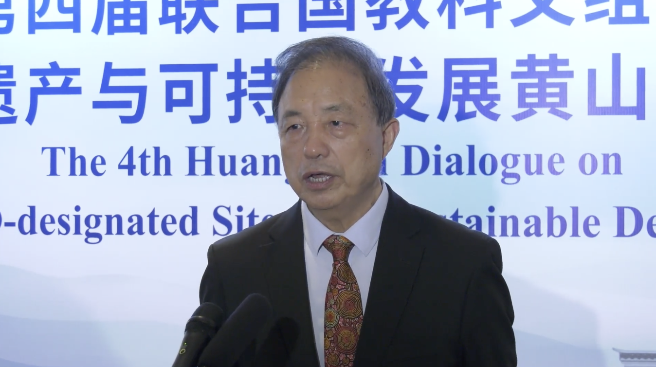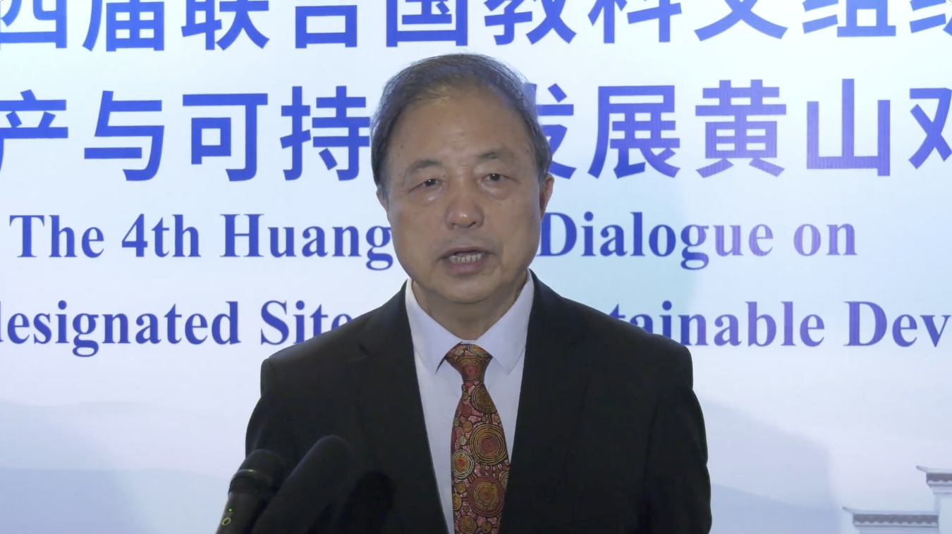 郭华东在第四届联合国教科文组织名录遗产与可持续发展黄山对话会闭幕式上致辞 蔡季安 摄