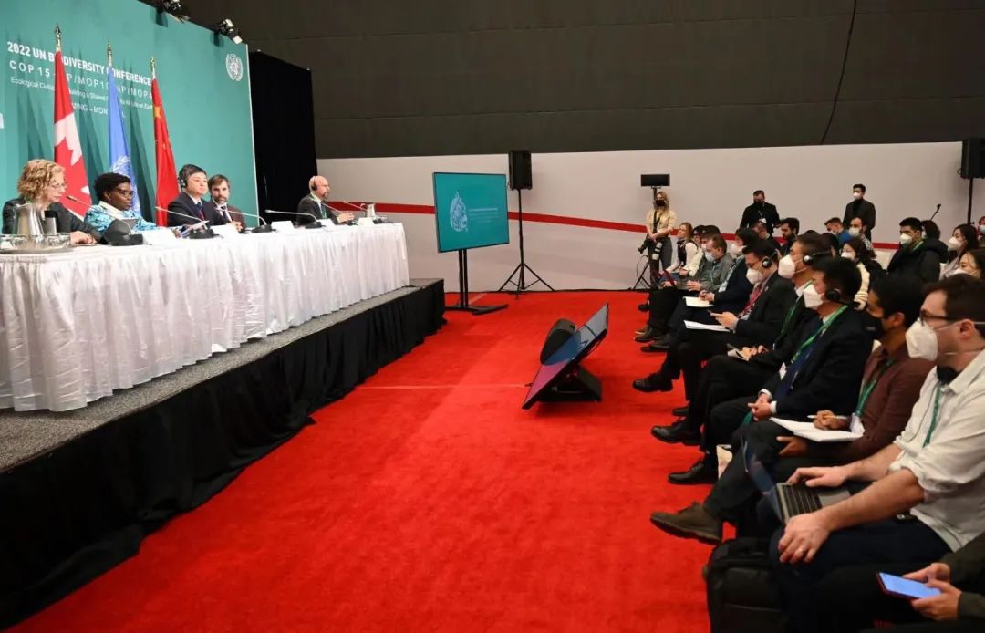 当地时间12月13日,《生物多样性公约》第十五次缔约方大会(COP15)第二阶段会议在加拿大蒙特利尔举行第二场新闻发布会。COP15主席、生态环境部部长黄润秋,加拿大环境与气候变化部长吉尔博,联合国副秘书长兼联合国环境规划署执行主任安德森,联合国《生物多样性公约》(以下简称《公约》)秘书处执行秘书穆雷玛出席发布会,并共同回答了记者提问。