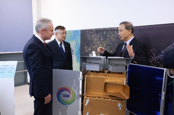 研究中心主任郭华东向克勒希介绍SDGSAT-1卫星
