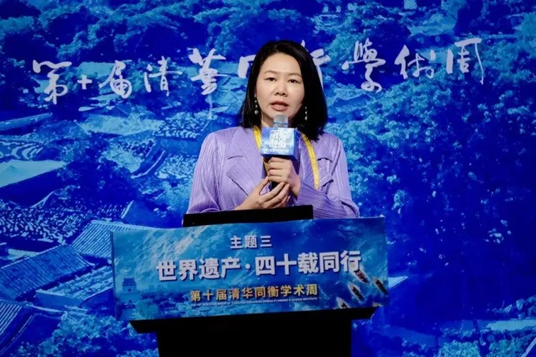 恽爽院长在致辞中表达对与会嘉宾的感谢和对论坛圆满举办的祝愿。她表示,在中国加入《保护世界文化和自然遗产公约》40年之际,相聚于本论坛意义非凡。我国世界遗产从零起步,现已增至60项,稳居全球前列,这些成就背后是国家的高度重视与战略引领,也凝聚着遗产保护行业几代人无数的心血与付出。她指出40年间,世界遗产保护理念不断更新迭代,保护实践逐级落地,清华同衡有幸深度参与并见证了中国世界遗产事业的发展历程,在多个关键环节贡献了力量。从价值研究、申报文本编制到保护规划、监测管理体系建设,再到数字化技术应用和社区可持续发展实践,清华同衡先后倾注心力于河南嵩山登封“天地之中”建筑群、云南普洱景迈山古茶林、三星堆、景德镇等项目,推动北京中轴线、济南古城等历史城市及工业、乡村遗产的保护与再生。这些项目凝聚了历代清华人的智慧与坚守,也是对党中央关于赓续中华文脉、推动优秀传统文化创造性转化和创新性发展的具体响应。