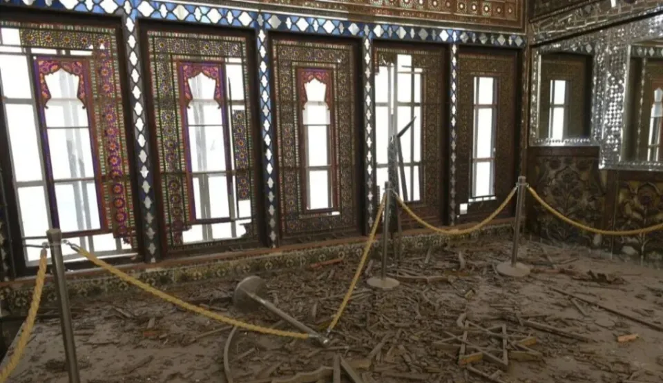 据伊朗媒体最新报道,位于德黑兰的世界遗产戈勒斯坦宫(又译作古列期坦宫,Golestan Palace)在近期美国与以色列针对伊朗首都的空袭中部分受损,好在戈勒斯坦宫博物馆的文物在之前已被转移到了安全的地方——这些文物目前仍保存完好。戈勒斯坦宫的部分建筑,如窗框、木门和一些镜面装饰,已有破坏。3月2日,伊朗驻萨拉热窝大使馆通过社交媒体公布了部分受损照片。