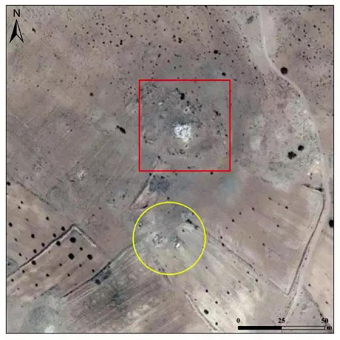 黄圈为新发现古墓葬遗址,红框为已知堡垒遗址