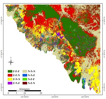 吴哥遗产地空间信息数据库框架柬埔寨库仑山地区森林遥感变化图1989-2000-2014