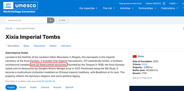 早期发现的古防洪工程被列入西夏陵遗产组成