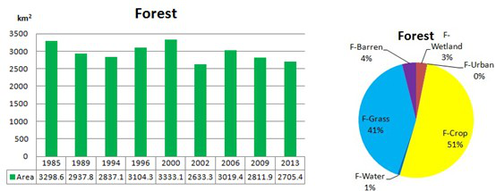 图5. 1985-2013吴哥森林覆盖面积变化及归因分析